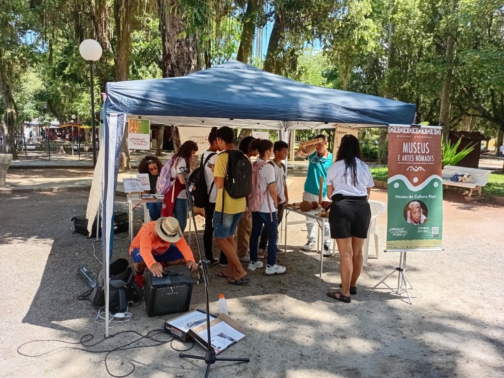 O projeto “Museus e Artes Nômades” é resultado da ação de extensão “Patrimônio e autonomia: Apoio ao Museu da Cultura Puri”, realizada em parceria pelo Museu da Cultura Puri, pelo Centro Cultural Uchô Nhãmanrúri e pelo NEP-UFRRJ. O projeto tem como objetivo principal ser um meio de consolidar, ampliar e apoiar formas contemporâneas de cultura e artes indígenas, divulgando a sua cultura material e imaterial e promovendo o ensino da história indígena, da educação intercultural, da educação ambiental e patrimonial, por meio de ações de popularização de artes e artistas indígenas contemporâneos. Ao longo do primeiro semestre de 2025 realizaremos exposições museológicas comunitárias itinerantes e atividades artístico-pedagógicas (apresentações musicais, contação de histórias/performances, rodas de conversa e de brincadeiras, vivências culinárias, oficinas de artesanato e exibição audiovisual.)