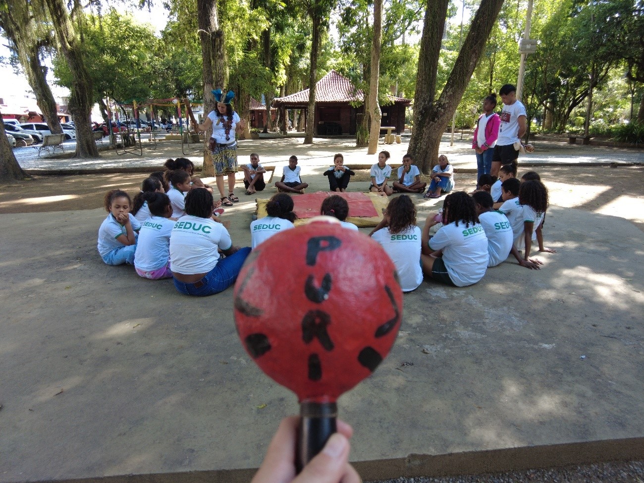 Em Paraíba do Sul, visitaram a exposição as Escolas Municipais Andrade Figueira e Arcanjo Antonino Lopes. A primeira escola levou um público adolescente, com seus alunos de 14 a 16 anos, e a segunda escola levou crianças de 8 a 10 anos de idade. Além de receber uma visita guiada por cada uma das tendas da Exposição, onde puderam aprender sobre e manusear os objetos artísticos – como instrumentos, livros, artesanatos e painéis – esses alunos participaram de dinâmicas culturais e lúdicas com Sol e Dauá, sendo cada uma delas direcionadas para a idade de seu público. Ali puderam ser contextualizados a respeito da presença histórica Puri na região, ouvir histórias, cantar e dançar.